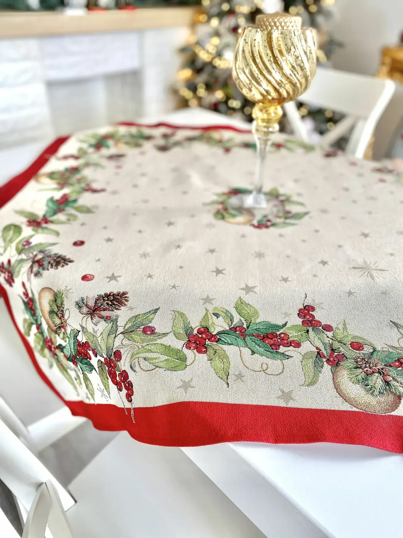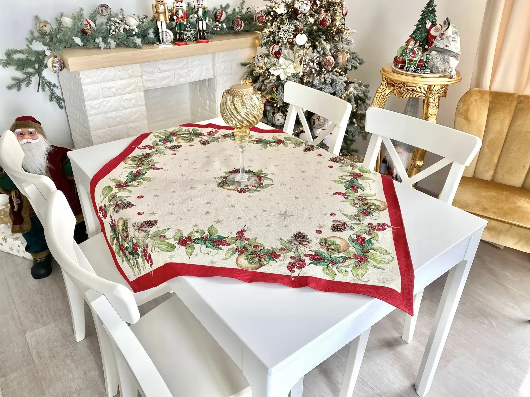 Гобеленова скатертина створить у Вашій домівці атмосферу свята і затишку у будь-яку пору року. Наші гобеленові вироби відрізняються незмінною якістю та довговічністю, вони не вимагають особливого догляду. Вони практичні у використанні, не втрачають кольору після прання, з них без зусиль відпираються плями і їх легко прасувати. -