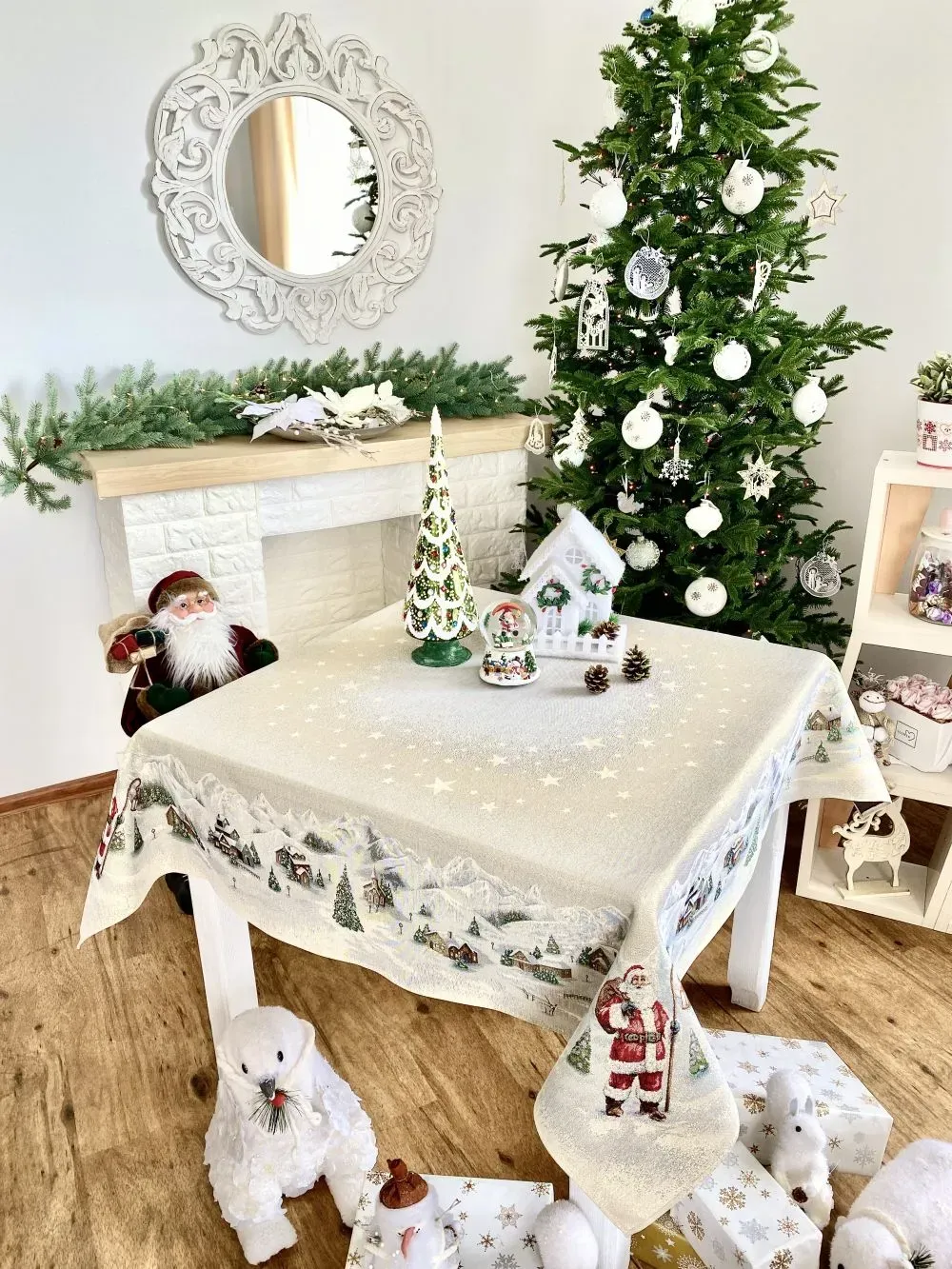 Артикул RUNNER974-280 Розмір 137х280 Форма Прямокутна Розділ Скатертини Дизайн Новорічний Вид Золотий люрекс Колір Бежевий Склад тканини 75% поліестер, 22% бавовна, 3% акрил