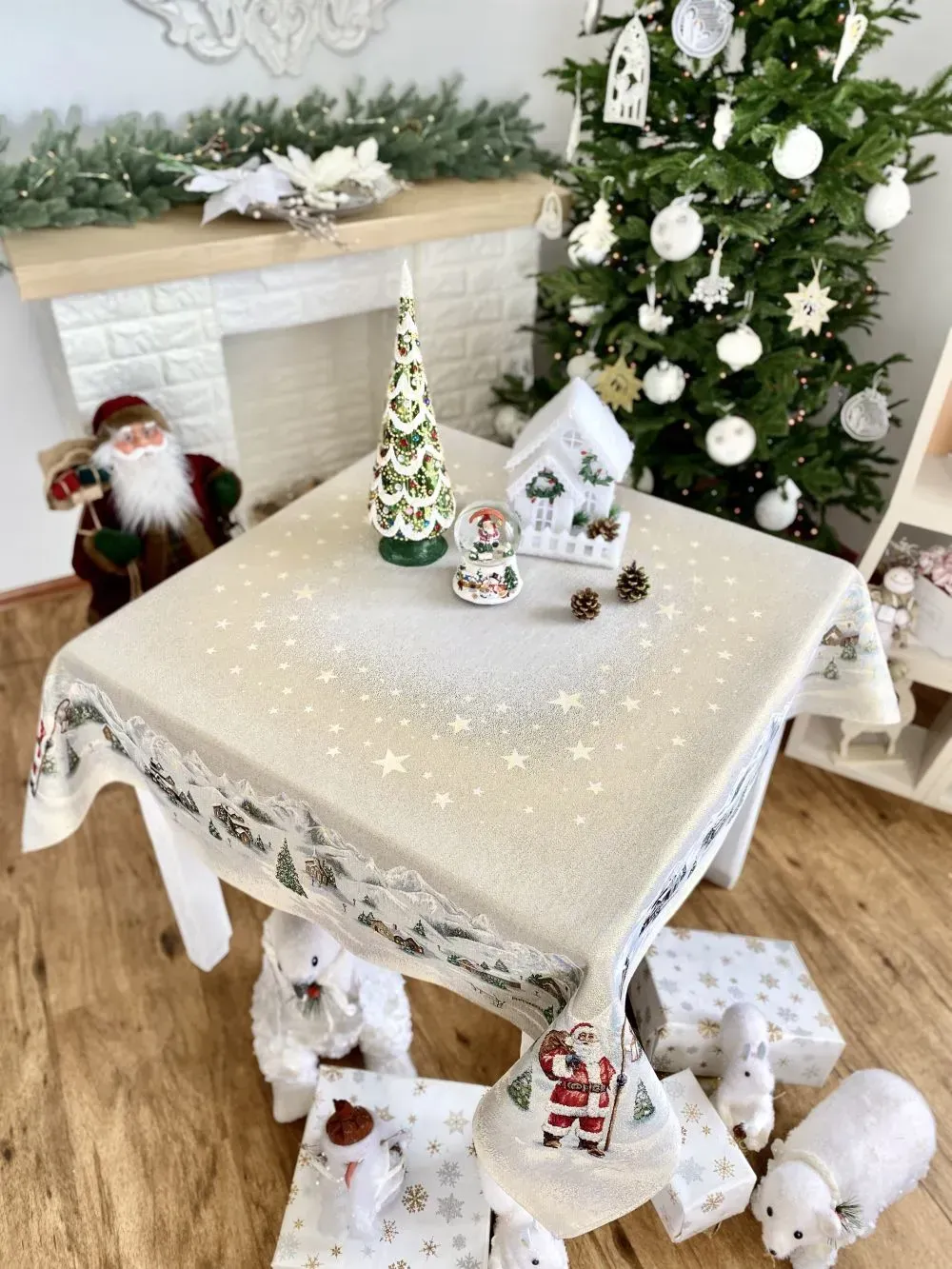 Гобеленова скатертина створить у Вашій домівці атмосферу свята і затишку у будь-яку пору року. Наші гобеленові вироби відрізняються незмінною якістю та довговічністю, вони не вимагають особливого догляду. Вони практичні у використанні, не втрачають кольору після прання, з них без зусиль відпираються плями і їх легко прасувати. -