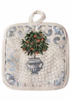 Прихватка - невід'ємна частина кухні. Гарний дизайн, іспанська тканина, гарна якість! Склад тканини: 34% бавовна, 63% поліестер, 3% акрил Наповнювач: ватин Розмір: 20х20см Виробництв...